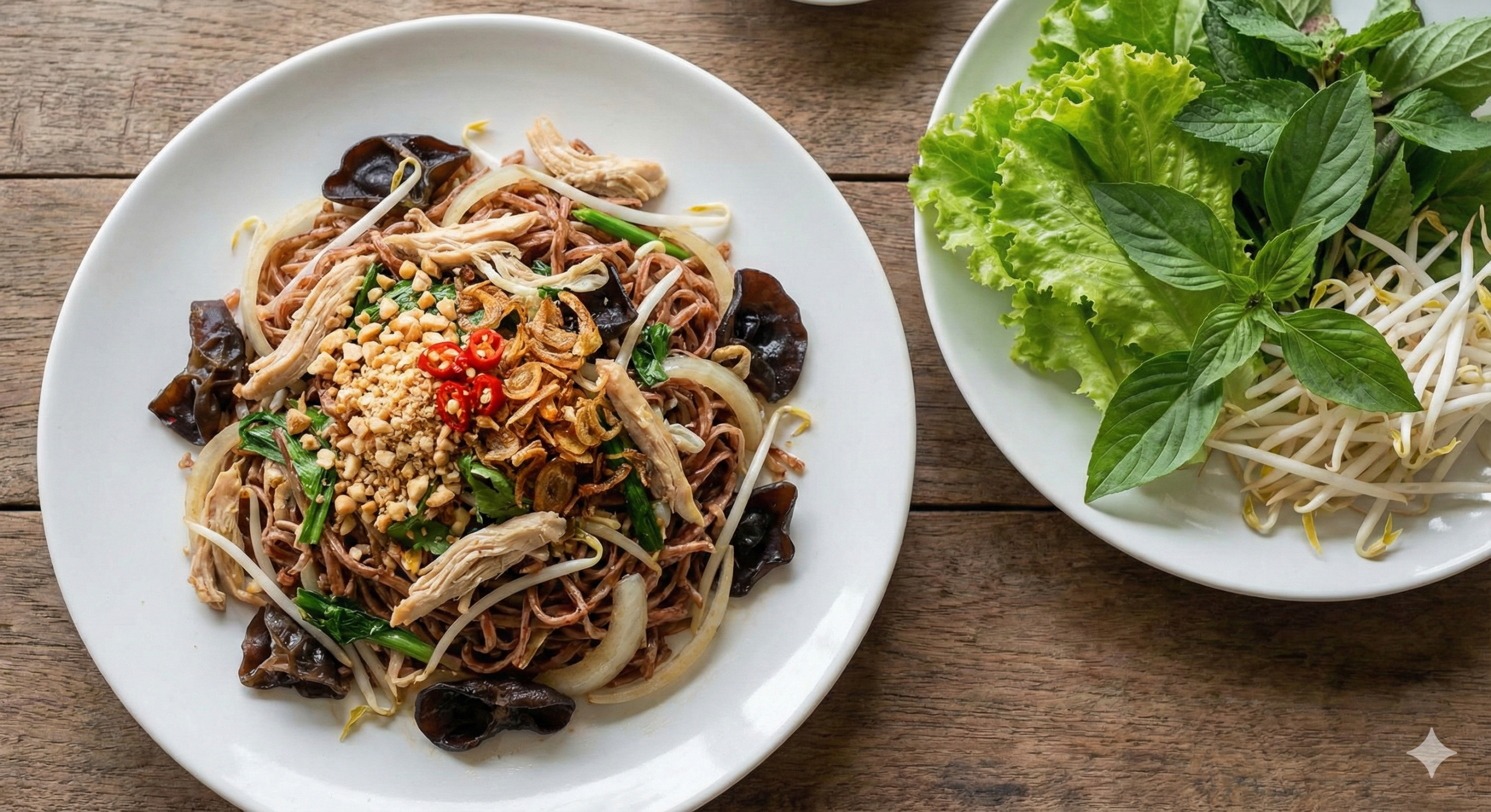 Hủ tiếu gạo lứt xào gà mộc nhĩ
